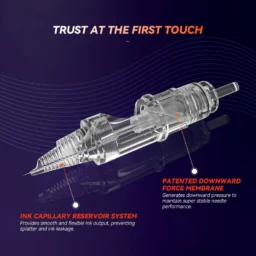 Experience superior tattooing with the AWE Series Round Shader Tattoo Needle Cartridges, featuring both our patented capillary reservoir and membrane. Benefit from larger ink storage, exceptional ink flow, zero splatter, and unmatched needle stability and accuracy. Made with medical-grade plastics, silicon, and the finest stainless steel (304 & 316), these cartridges offer unparalleled quality and…